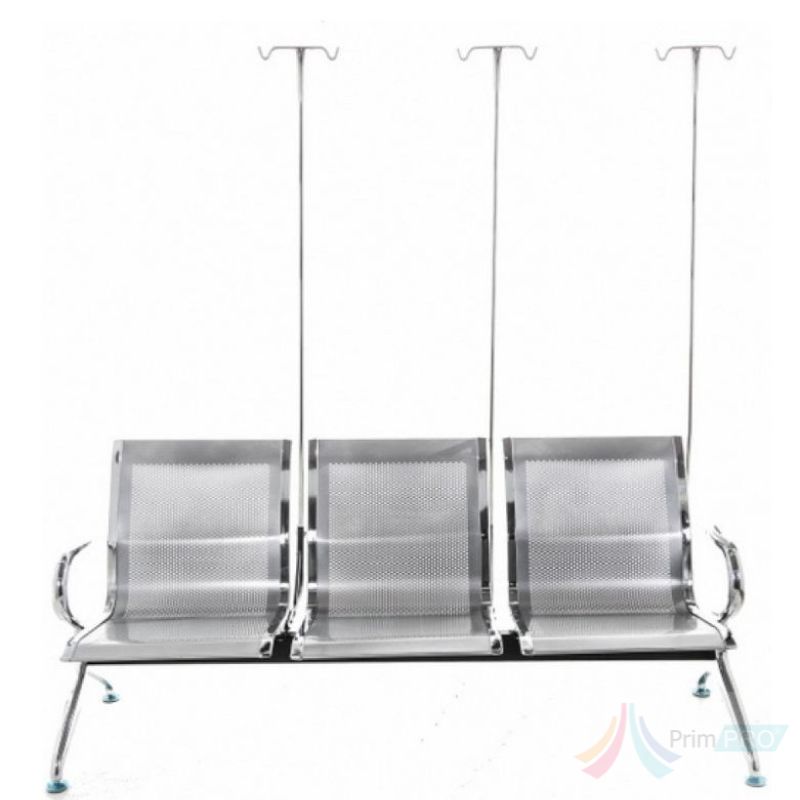 Banchetă metalică cu suport pentru perfuzii, 3 locuri