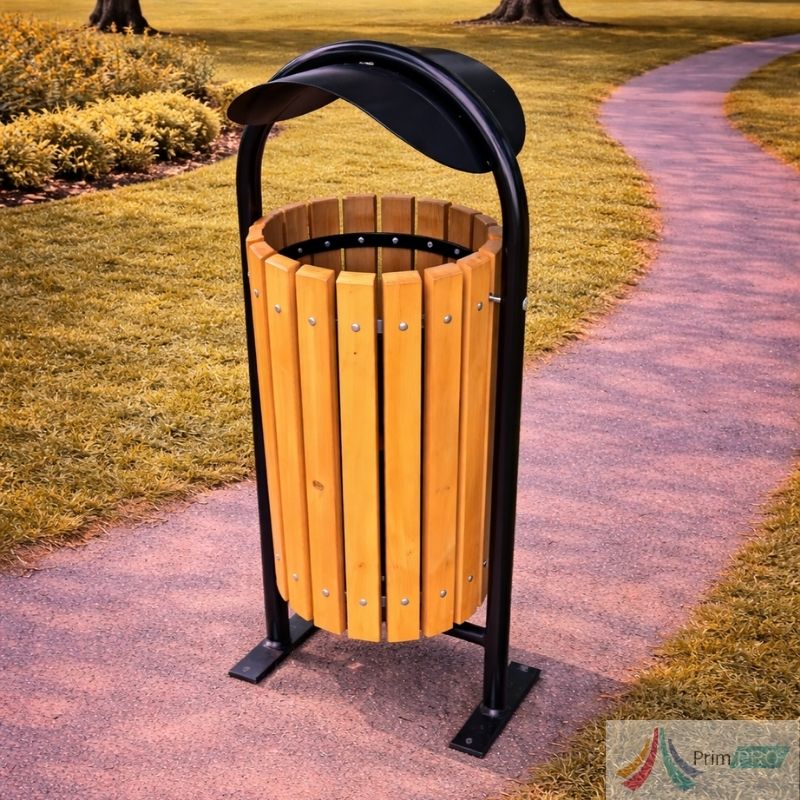 Cos de Gunoi Parc din Lemn cu Capac PRO07