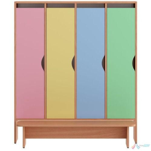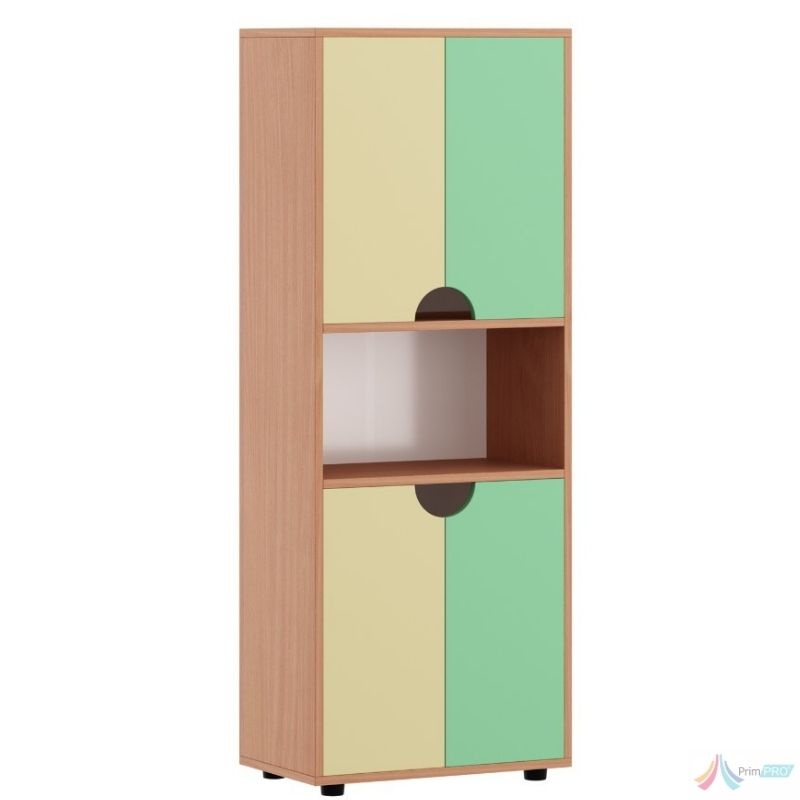 Dulap gradinita cu 1 compartiment si 4 usi MDF PRO11327, Galben / Verde
