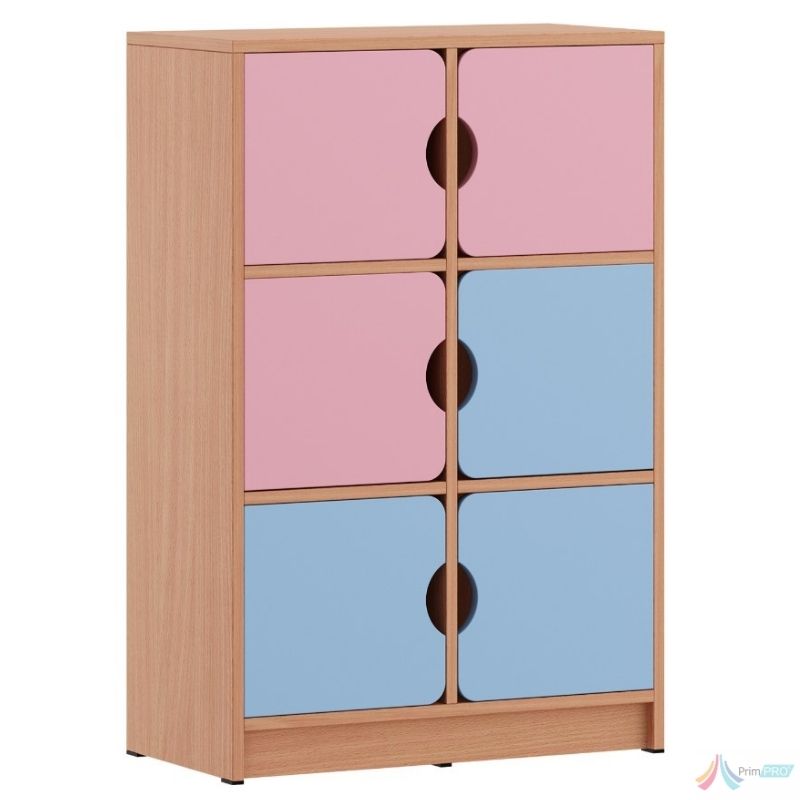 Dulap gradinita cu 6 usi PRO11348 MDF, Roz / Albastru