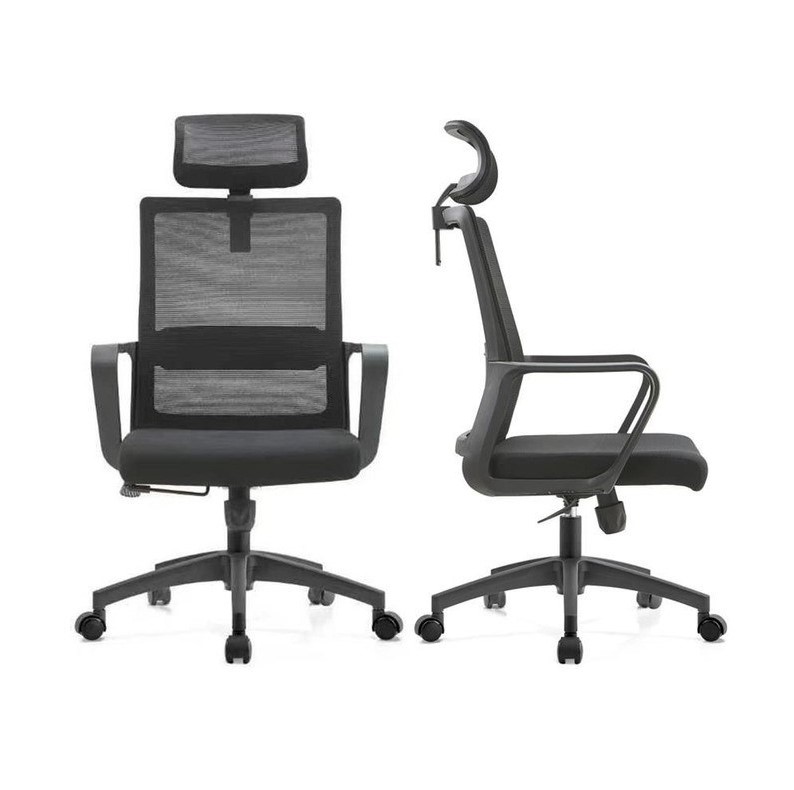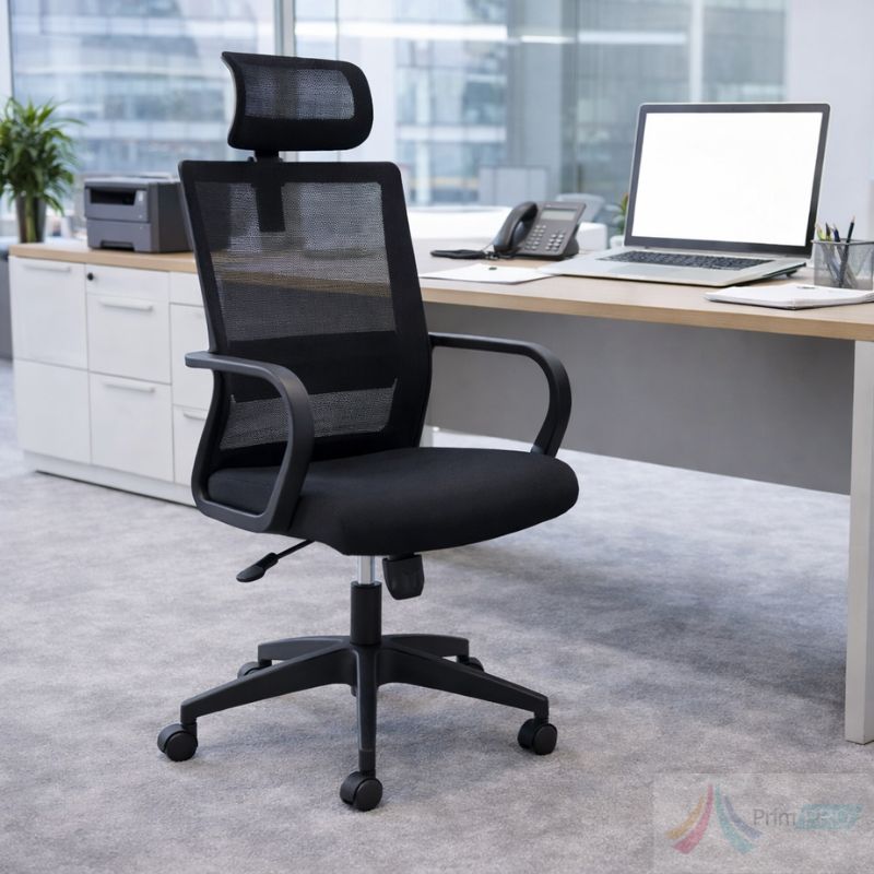Spătar înalt cu suport lombar fix și tetieră reglabilă, pentru poziție corectă și ergonomică