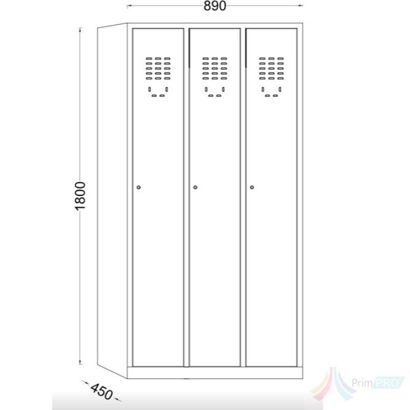 Vestiar 3 uși compartimentat 1200x450x1800 mm PROP827